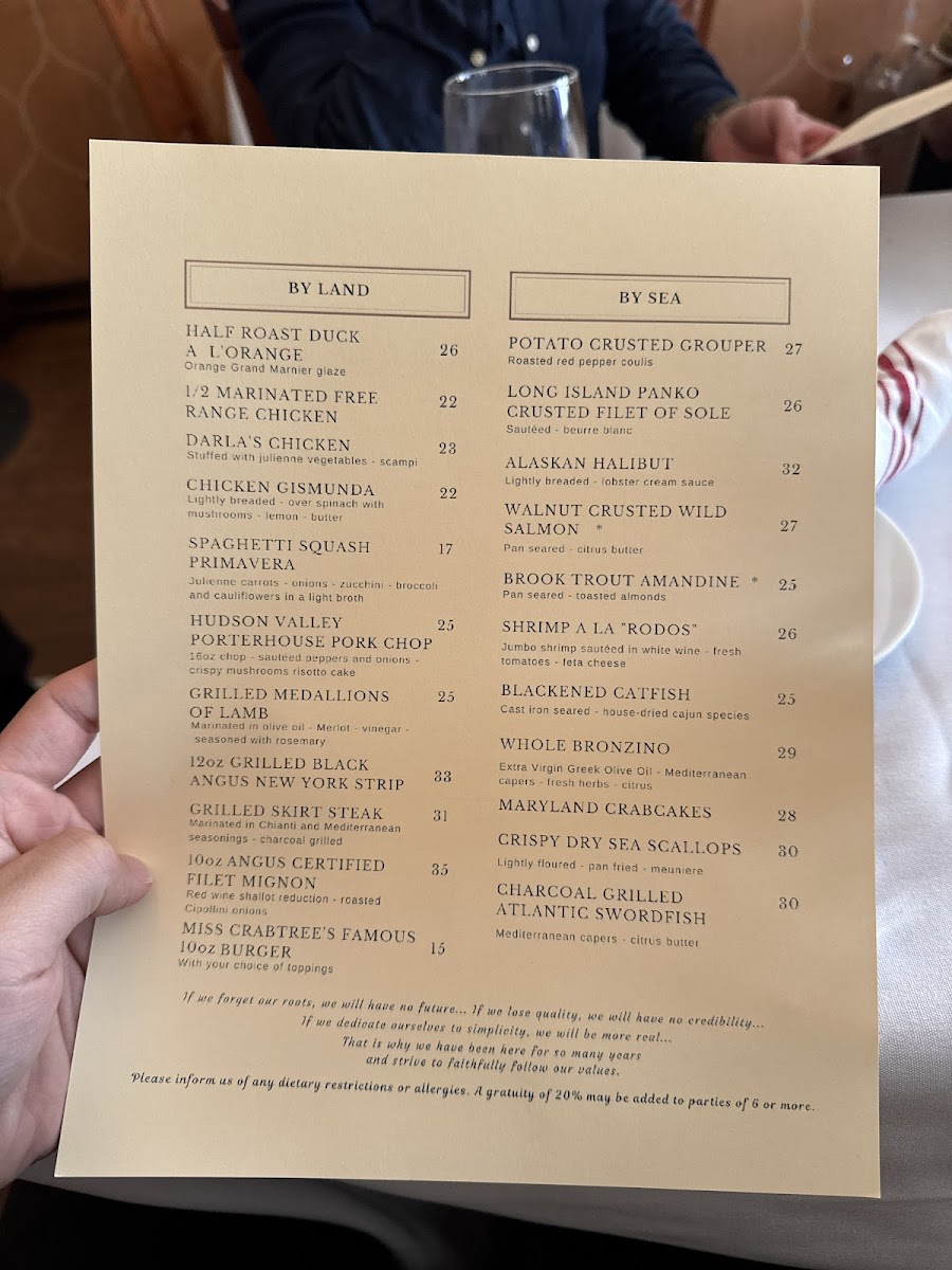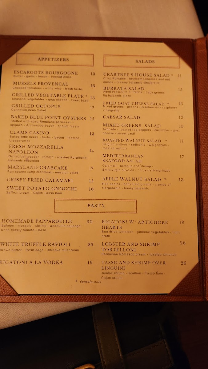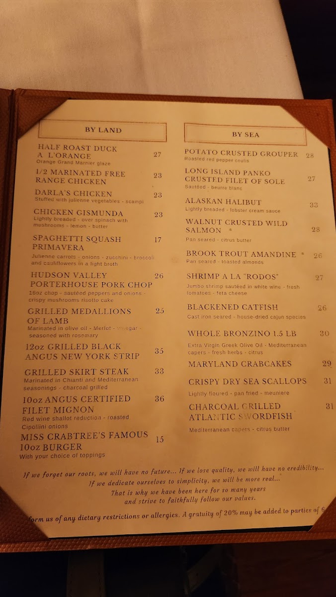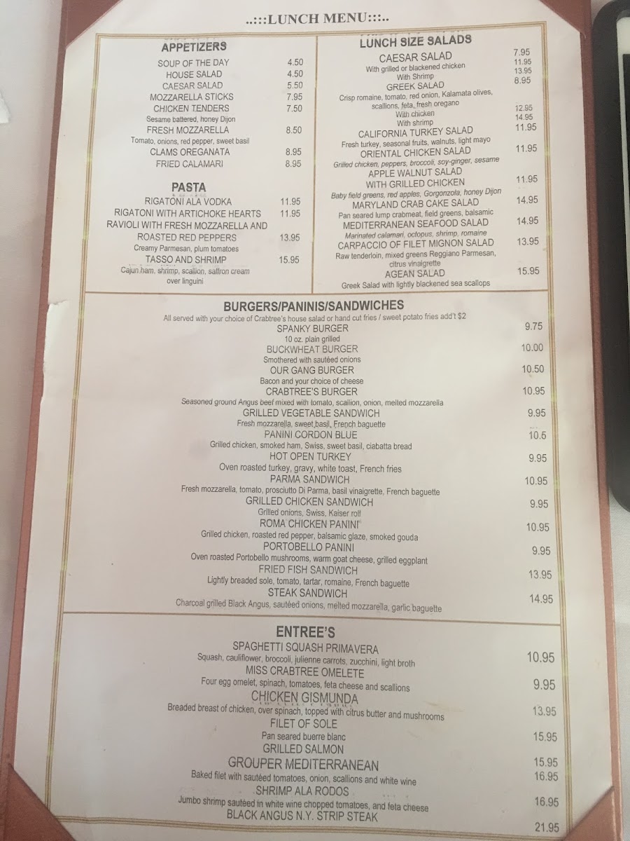Crabtree's Restaurant Menu offers a delightful selection of comforting, home-cooked dishes that are perfect for any occasion. Located at 226 Jericho Tpke in Floral Park, NY, this cozy spot has been a go-to for locals who appreciate a warm, welcoming atmosphere and delicious, hearty meals. Whether you're in the mood for a classic steak, fresh seafood, or something light and flavorful, the menu has something to satisfy every craving. Each dish is crafted with care and attention to detail, using quality ingredients to ensure a memorable dining experience. For those with a taste for tradition, the restaurant brings a mix of comforting flavors with a modern twist. There's no shortage of options, making Crabtree's Restaurant an ideal place for everything from casual meals to special celebrations.